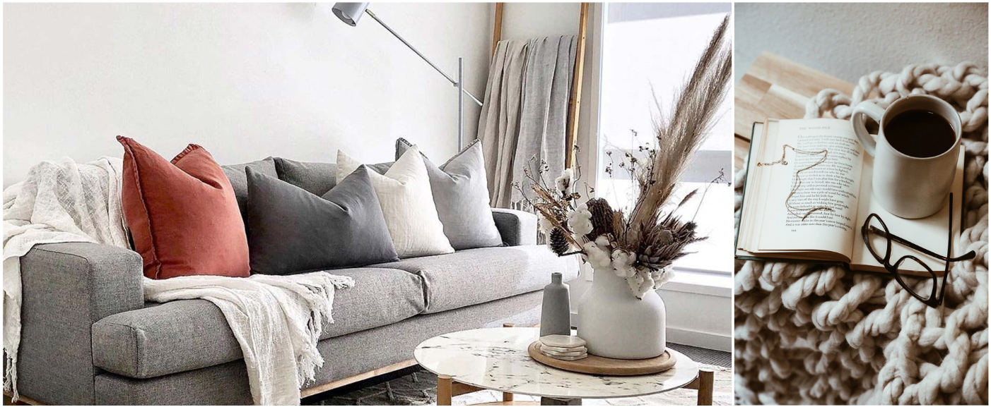 Add throw blankets where you naturally sit. Swap lightweight bedding for something heavier and more comforting. Introduce soft fabrics like knit, fleece, or wool in small doses.